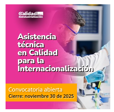 Como parte de la estrategia ‘Calidad para la Reindustrialización’, el Ministerio de Comercio, Industria y Turismo y Colombia Productiva, con el apoyo de ICONTEC, ponen a disposición de los empresarios la convocatoria de asistencia técnica especializada del programa ‘Calidad para la internacionalización 2.0’.